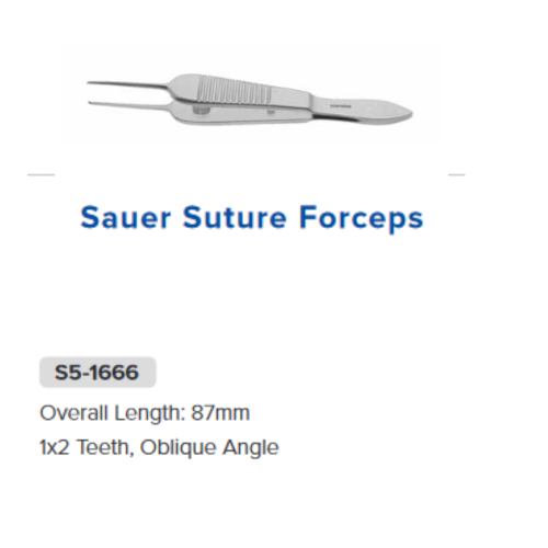 Sauer Suture Forceps, 1X2, Oblique Angled