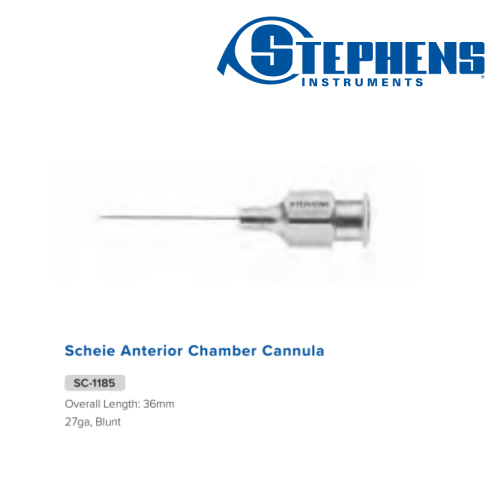 Scheie Anterior Chamber Cannula Overall Length: 36mm 27ga, Blunt