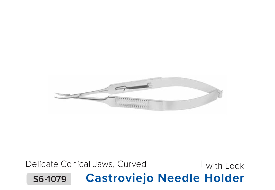 Stephens USA - Castroviejo Needle Holder Delicate Conical Jaws, Curved W/ Lock