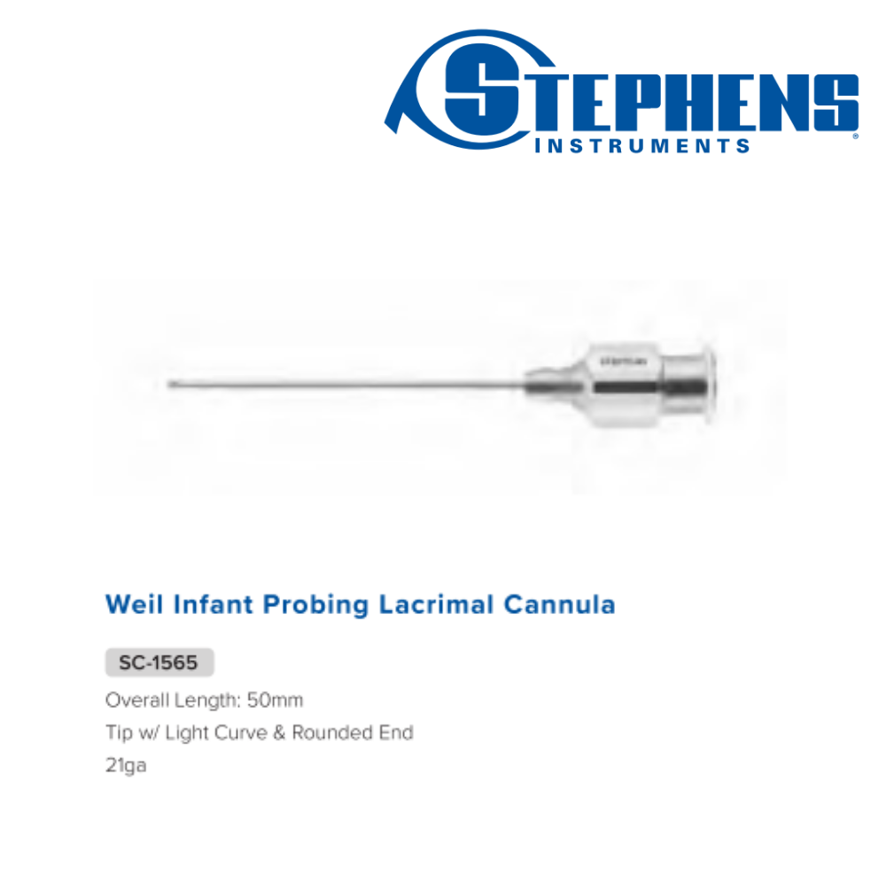 Weil Infant Probing Lacrimal Cannula Overall Length: 50mm Tip w/ Light Curve & Rounded End 21ga